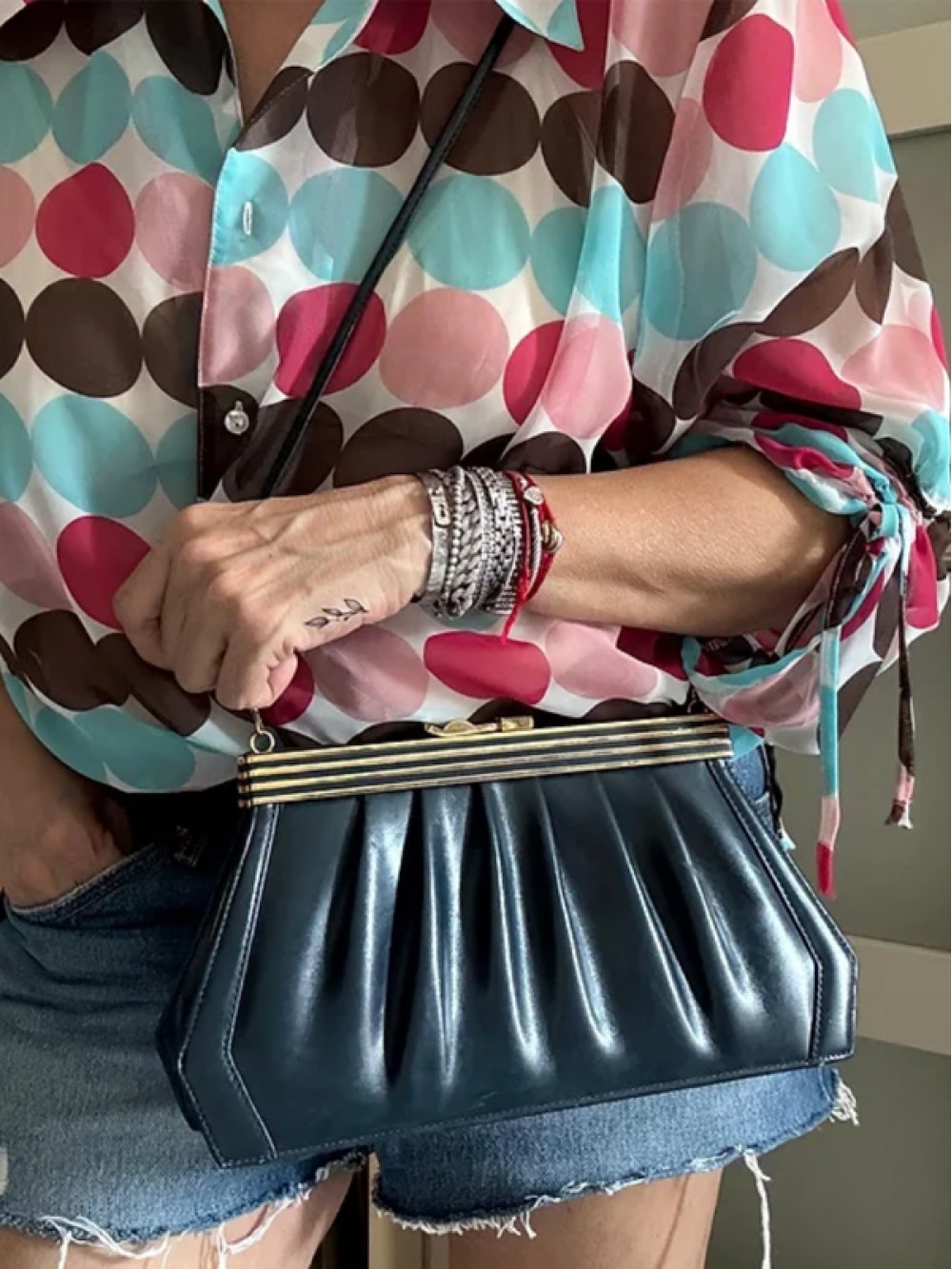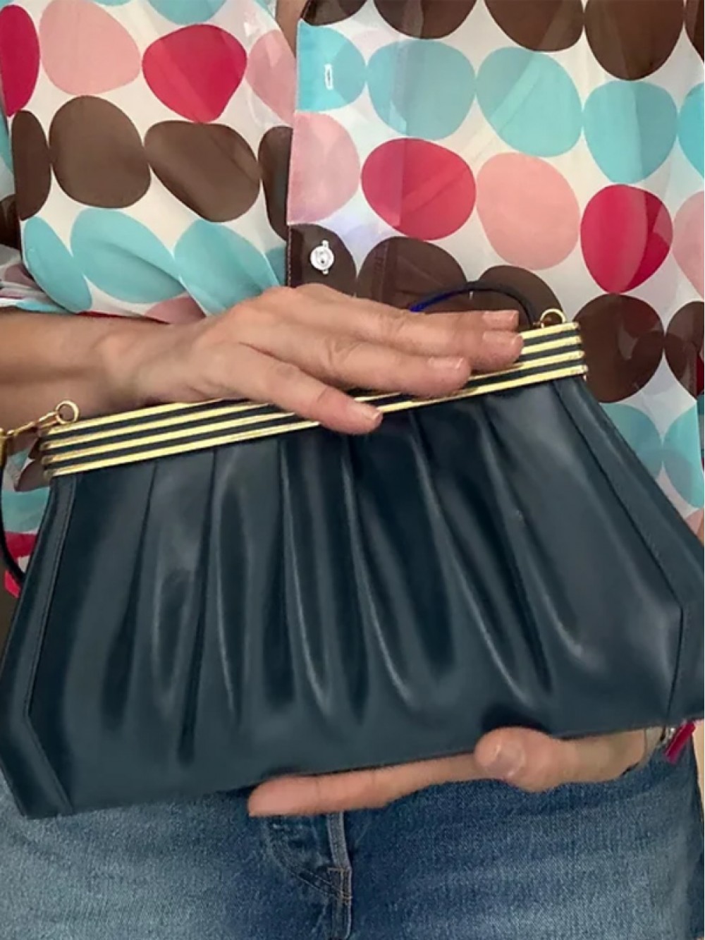 Vintage 80'ler Lacivert Deri Çanta