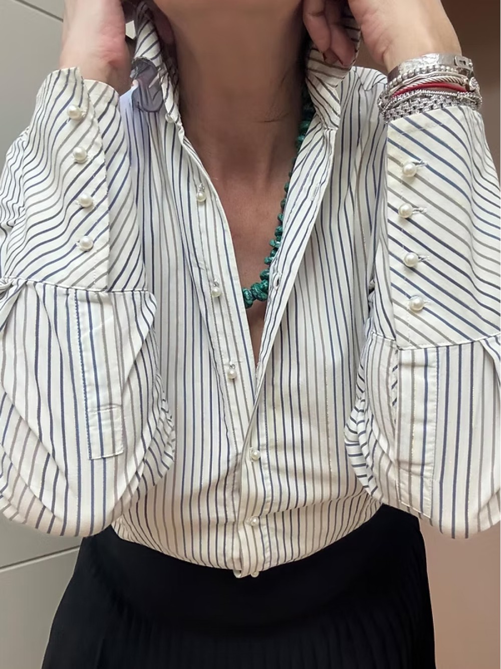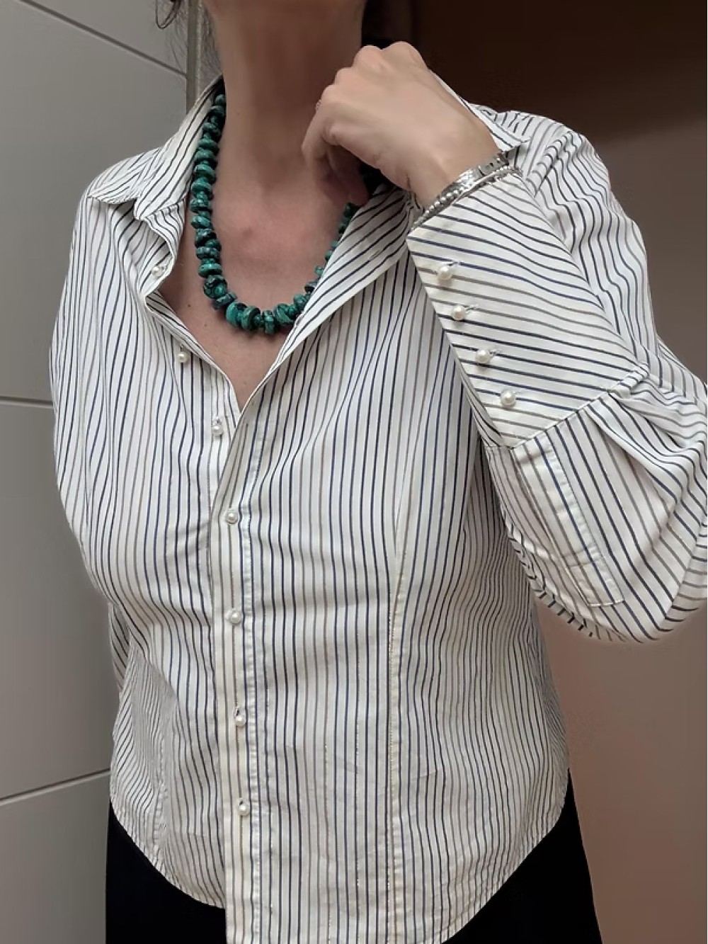 Vintage İnci Düğmeli Gömlek