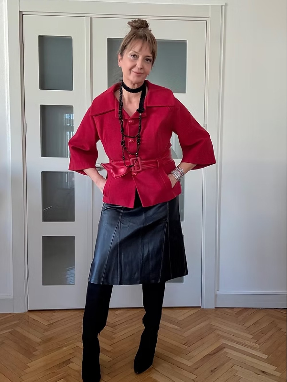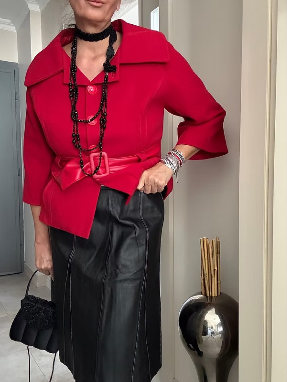 Home Store Balıksırtı ve Deri Detaylı Ceket