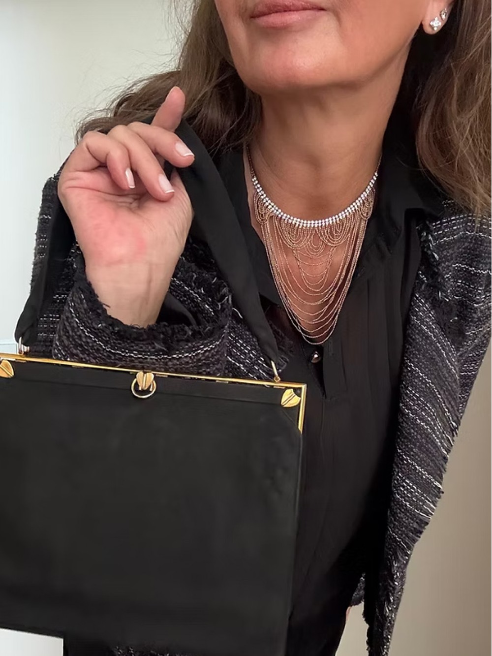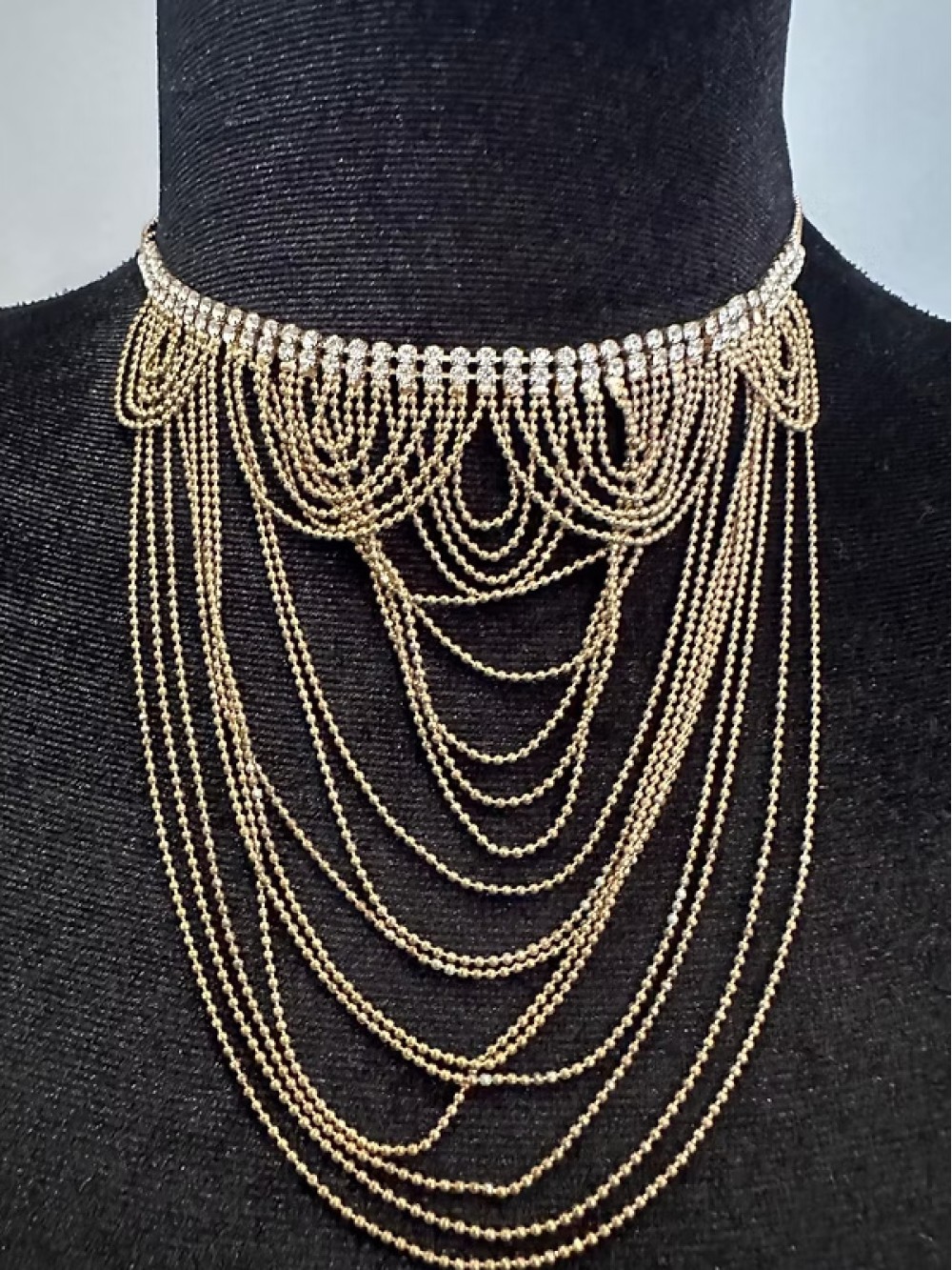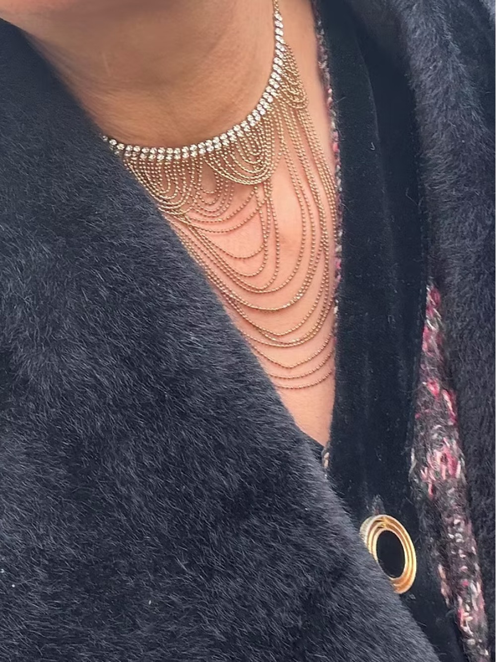 Vintage 70s taşlı zincir kolye