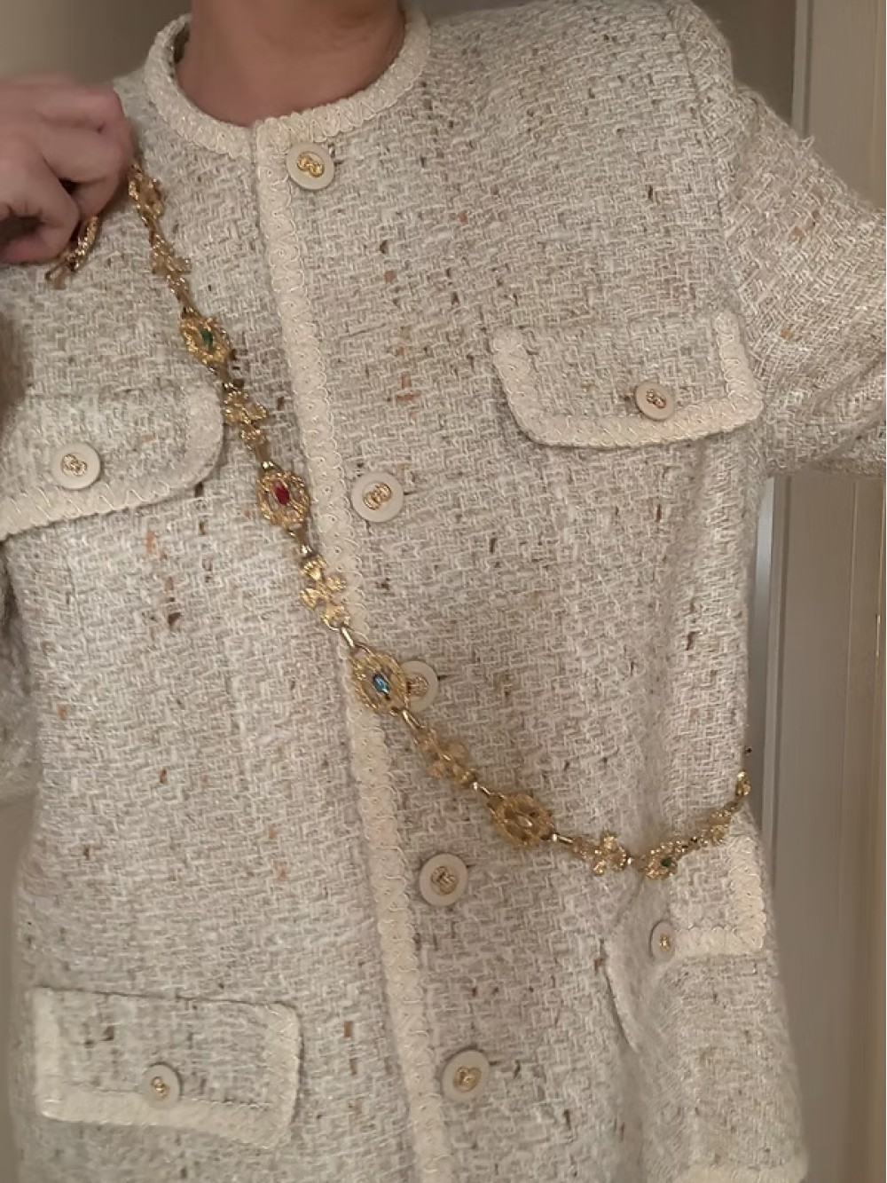 Vintage Gold & Doğal Taşlı Zincir Kemer