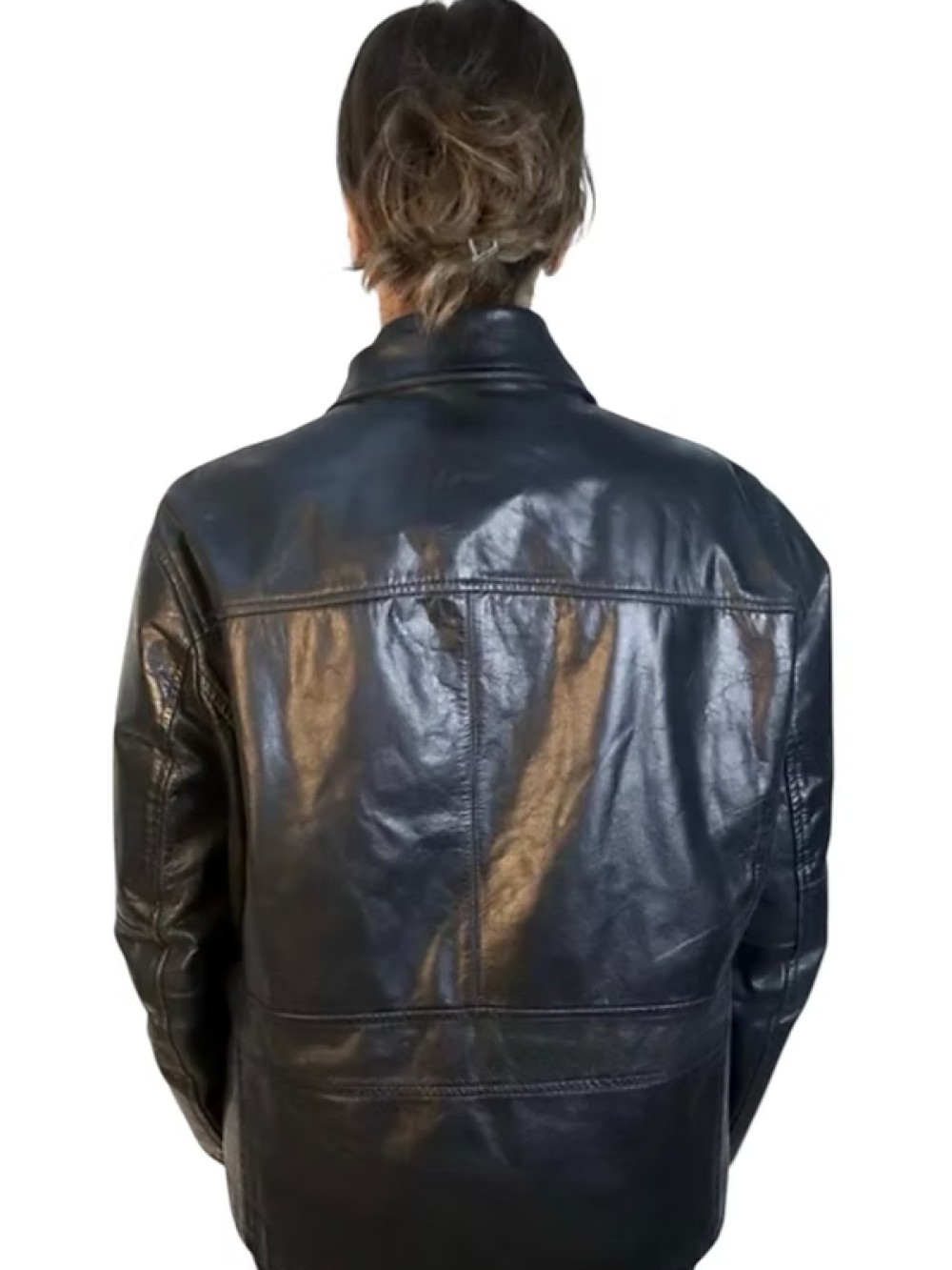Vintage Sırtı Dantel ve İşlemeli Deri Ceket