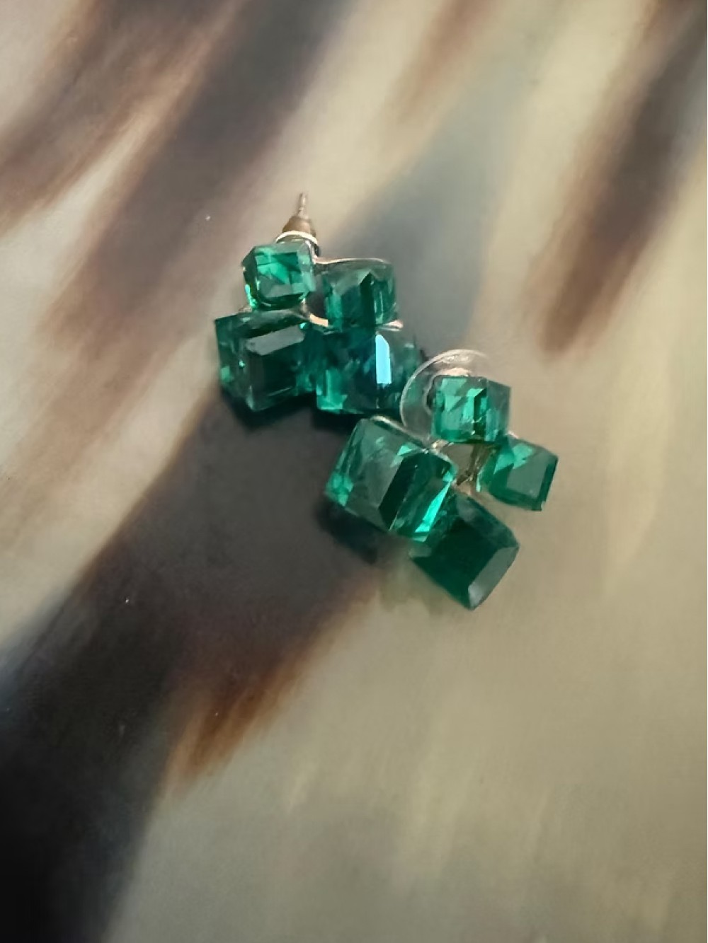 Vintage Yeşil Kristal Taş Küpe